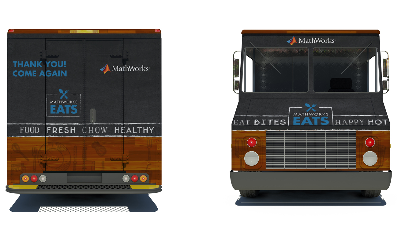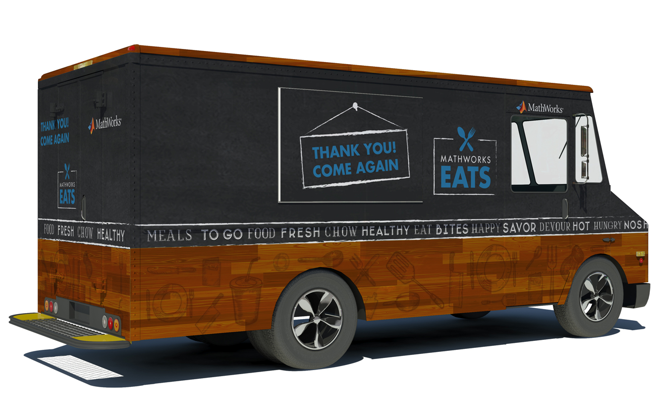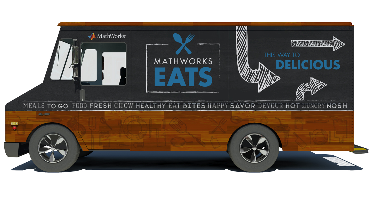 To support the growing MathWorks campus, a food truck was established to serve a satellite campus. The identity utilizes chalkboard and distressed wood motifs to be reminiscent of finishes found in a hip and urban cafe.