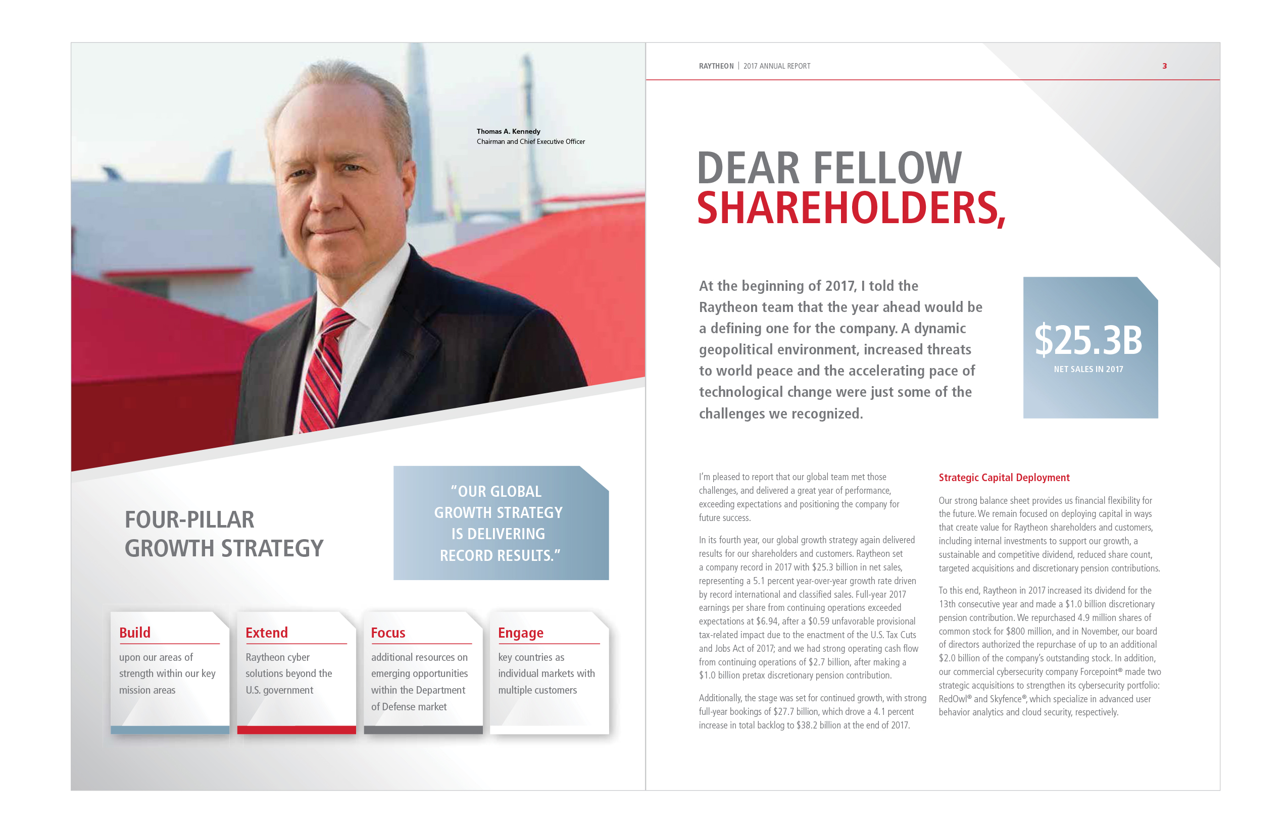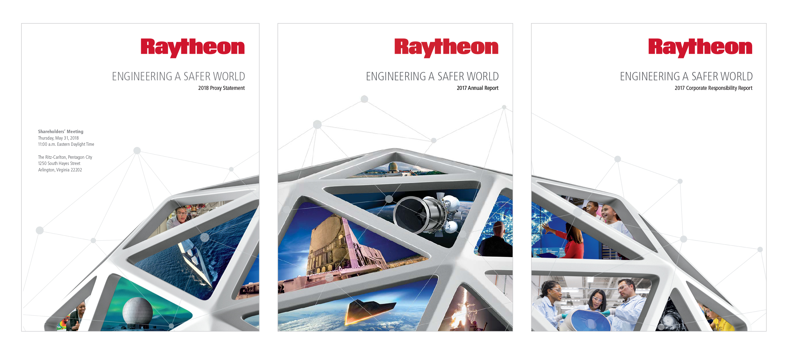 Building off of the Every Side of Cyber promotional campaign, the suite of shareholder communications consisting of the Annual Report, Proxy Statement and Corporate Responsibility Report, provide an overview of Raytheon’s performance and commitment to the community.