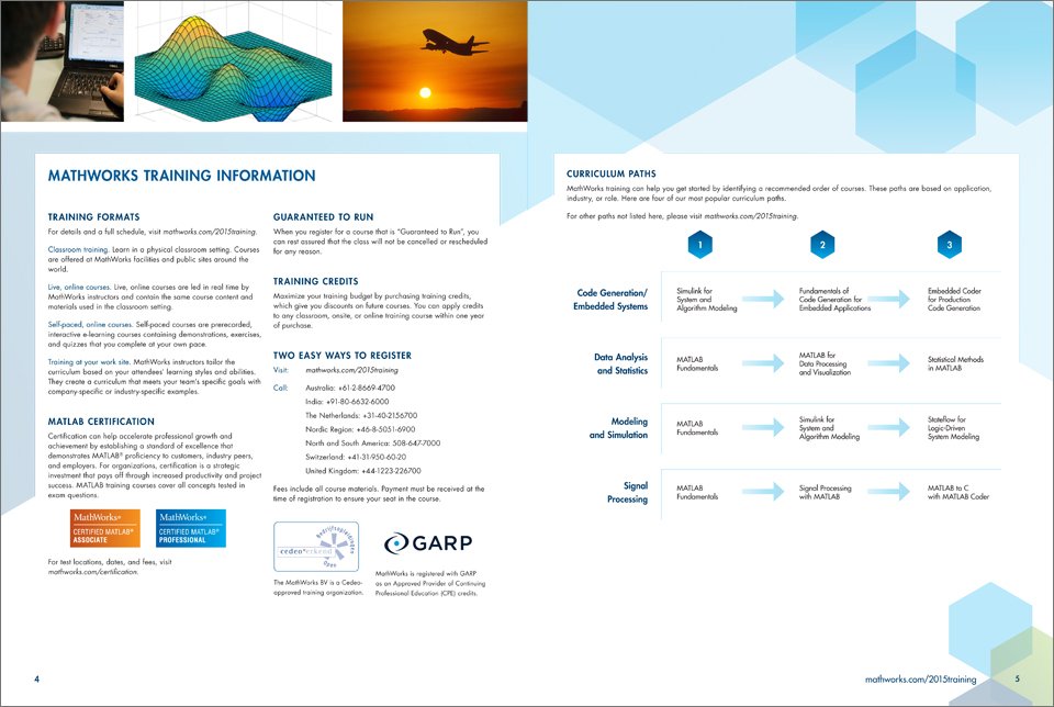 A multi-channel promotional campaign was developed to reposition MathWorks Training Services. The series of materials, produced in eight languages, highlights various courses and curriculum paths available to help users strengthen their knowledge of MATLAB and Simulink software.